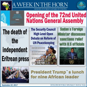 On Wednesday (September 20), Prime Minister Hailemariam was one of the nine African Heads of State or Government at a working lunch with US President Trump. (See article)